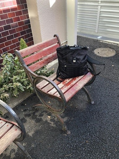 座るとお尻が冷たい💦エコバッグを敷きました。