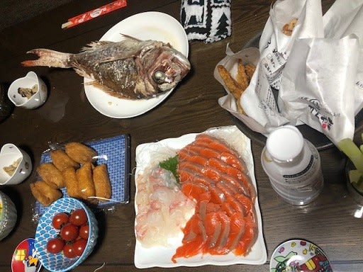 鯛 牡蠣 つぶ貝 エビ サーモンとヒラメの柵をお買い物。