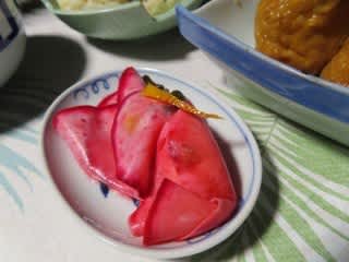 蕎麦稲荷 大根しらす和え 赤かぶ漬け